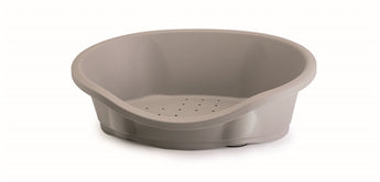 De Imac Mand Dido Taupe 50 x 38 x 20,5 cm is een robuuste ovalen hondenmand met ventilatiegaten en opstaande rand, van stevig kunststof. De kunststof hondenmand Dido is een stevige mand met opstaande rand. Deze rand biedt jouw hond meer steun en zo de gelegenheid er desgewenst tegenaan te liggen. De mand is voorzien van gaten aan de onderzijde, waardoor er voldoende ventilatie ontstaat. De anti-slip pootjes zorgen ervoor dat de mand bij het in- en uitstappen op zijn plek blijft staan. Te gebruiken met en zonder kussen of hondendeken.
