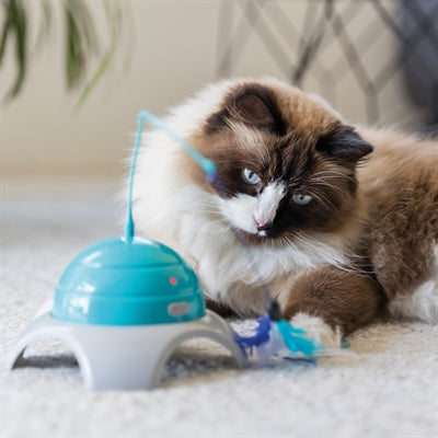Trixie Catch Me is een interactief kattenspeelgoed dat jouw kat uitdaagt om te jagen en te spelen. De ingebouwde motor laat de speelhengel alle kanten op bewegen, terwijl jij met de afstandsbediening bepaalt hoe het speeltje reageert. De onvoorspelbare bewegingen houden je kat actief en geboeid. Gemaakt van kunststof en geleverd met een extra speelhengel als reserve.