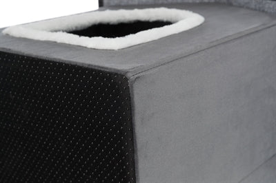 Trixie Hondenmand / Kattenmand Huis Livia Grijs / Wit 50 x 50 x 54 cm is een comfortabel kattenhuis of hondenhuis van polyester, bekleed met pluche en voorzien van een slipvaste onderkant. Verstoppen en heerlijk ongestoord slapen, jouw hond of kat kan het allebei in deze leuke Livia schuilplaats voor de hond of de kant. Dit huis is gemaakt van polyester in velourslook, met een ligplateau bekleed met zacht pluche. Ook de ingang is voorzien van een randje pluche. Het huis heeft een puntdak en is inklapbaar, om het ruimtebesparend op te bergen. Door de slipvaste onderkant kan jouw dier het huisje eenvoudig in- en uitstappen zonder dat het verschuift.
