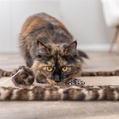 De Trixie Krabmat Leo Panterprint Bruin is een stijlvolle en praktische krabmat waarmee je kat zijn nagels op een natuurlijke manier kan verzorgen. De mat is gemaakt van sisal met een zachte pluche rand in panterprint, wat zorgt voor een trendy uitstraling. Dankzij de EVA-achterkant blijft de mat goed op zijn plek en kan hij zowel op de vloer worden gelegd als aan de muur worden opgehangen. Het speelballetje nodigt uit tot extra plezier.