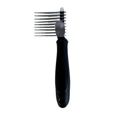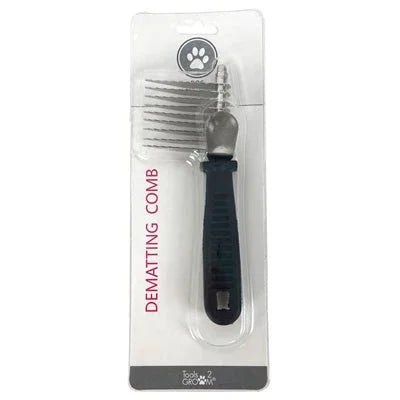 De Tools-2-Groom Klittenkam met Kunststof Greep van 17,5 x 6,5 x 2,2 cm is een handige klittenhark voor trimmers voor klitten in de vacht van honden en katten. Met deze kan snijd je de klit door in plaats van dat je de haren kapot trekt en haren lostrekt uit de huid. Zo voorkom je lelijke plekken in de vacht en onnodig pijn voor het dier. Door de kunststof greep ligt de kam stevig en prettig in de hand.