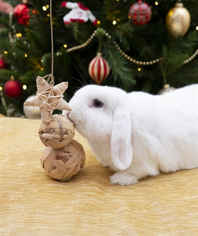 De Cupid & Comet Trio Boom Van Waterhyacint 22X8 cm is een hangend knaagdierspeeltje, volledig gemaakt van 100% natuurlijke materialen zonder lijm of metaal. De rotanster en twee gevlochten waterhyacintballen zorgen voor urenlang speelplezier en helpen verveling te voorkomen. Met een hoogte van 20 cm en een breedte van 8 cm kan het speeltje als één geheel worden opgehangen of opgesplitst in drie aparte speeltjes. Perfect voor konijnen, cavia's, hamsters, ratten, muizen, woestijnratten, chinchilla's en degoes.