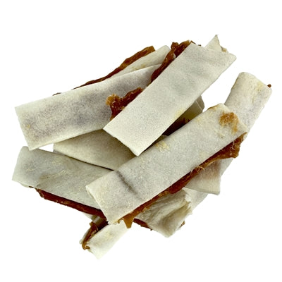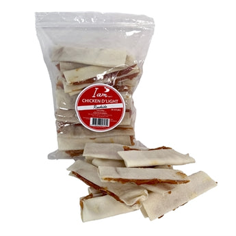 I Am Chicken D'Light Rawhide is een stevige hondensnack gemaakt van kip en runderhuid. Deze kauwsnack is eiwitrijk en heeft een compacte vorm, waardoor hij geschikt is als tussendoortje of beloning.